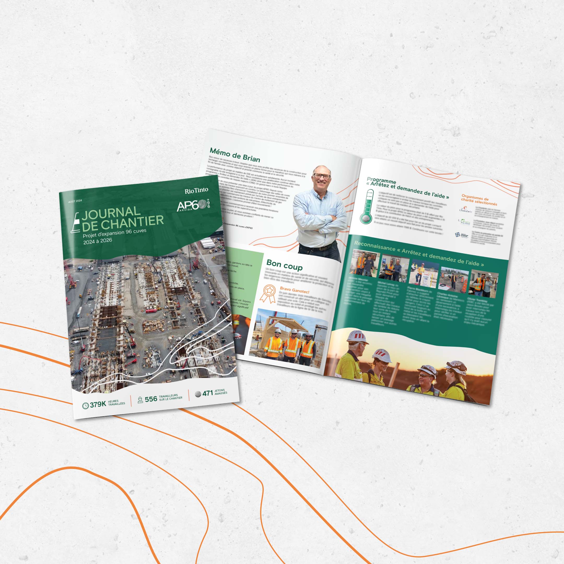 This time, Alexem Studio designed the Construction Site Journal for the AP60 expansion project — an internal publication aimed at keeping field teams informed about the project’s progress, recent successes, and ongoing initiatives.